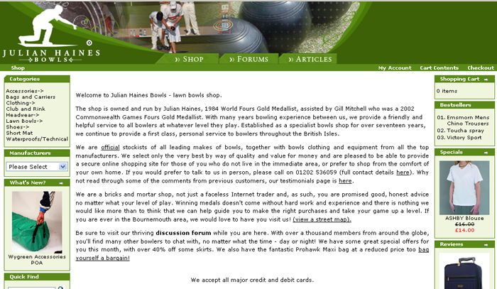 Julian Haines Bowls is a specialist lawn bowls retailer situated on the South Coast of England. The business has been operating for nearly 20 years, with most sales being generated directly through the shop. Mail order was provided with customers ordering from a printed price list sent out once a year.